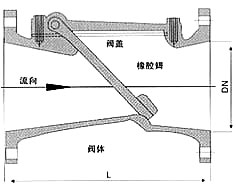 橡膠瓣止回閥主要由閥體、閥蓋及橡膠瓣三種主要零件組成。其中橡膠由鋼板、鋼棒及強化尼龍布做襯底,外層披覆橡膠制成,閥瓣開關壽命可達100萬次。該閥采用全流面積式設計,具有水冰損失小,不易堆積雜物,維修簡便等特性。該閥主要適用于給排水系統(tǒng),可安裝于水泵出水口處,以防止倒流及水錘對泵損害。訪閥還可安裝在蓄水池進出水管的旁通管上,以防止池水倒流至給水系統(tǒng)中。