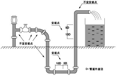 2、測(cè)量位置應(yīng)選在探頭上游有大于10D和下游有5D直管段處;