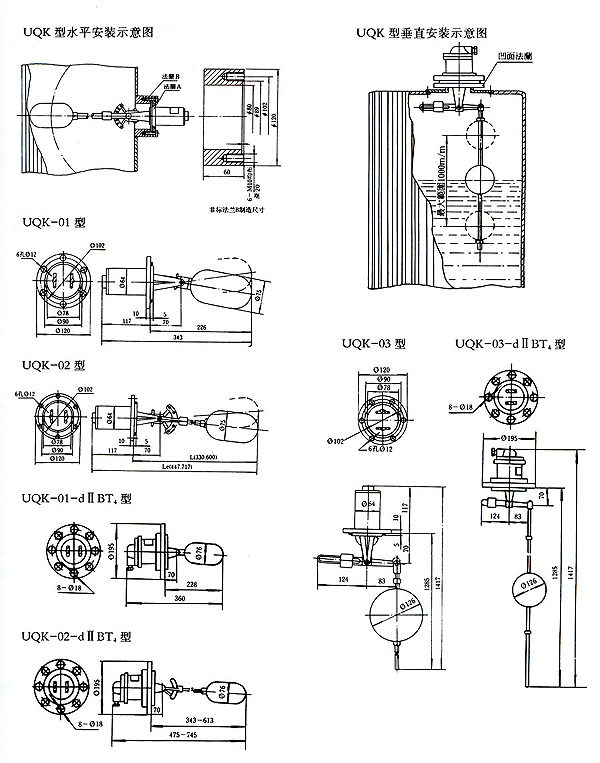 UQK型浮球液位控制器由互為隔離的浮球組和觸頭組二大部分組成。