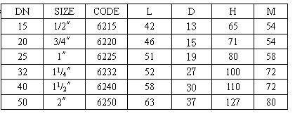 公稱壓力:PN≤1.6Mpa 適用介質(zhì):水 適用溫度:T≤150℃ 螺紋標(biāo)準(zhǔn):55º英制G管螺紋 Nominal Pressure:PN≤1.6Mpa Applicable media:water etc Applicable temperature:T≤150℃ Thread standard: 55ºinch system G pipe thread